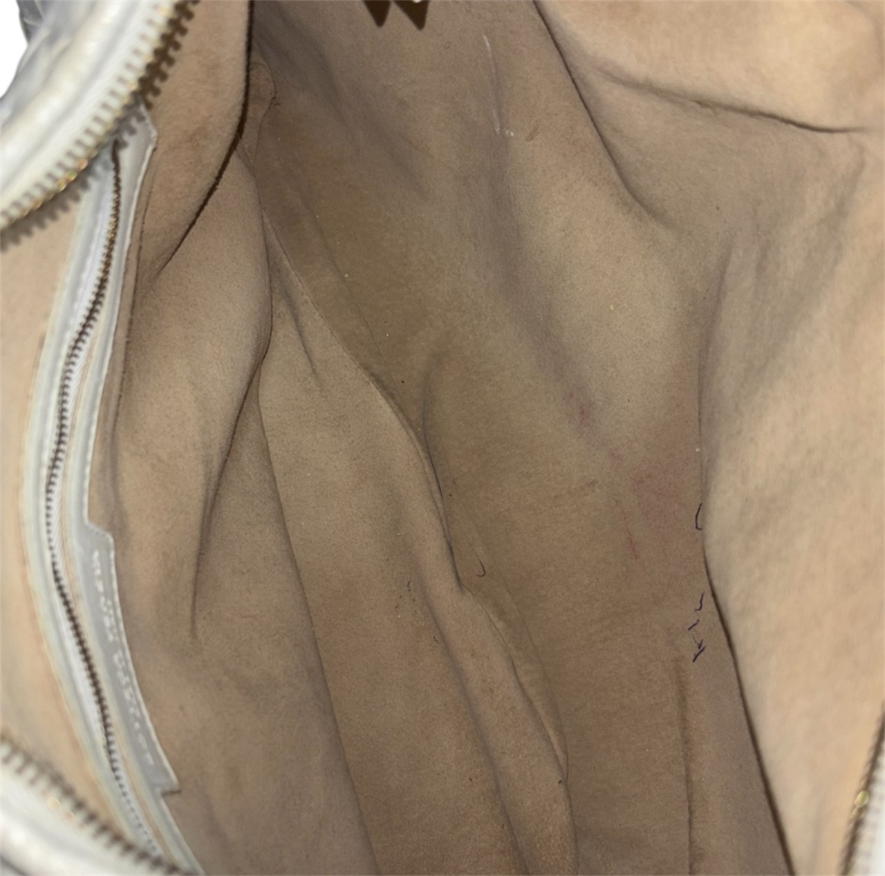 開口部、ショルダー裏側レザー剥がれあり。内側ペン跡、色移りあり。