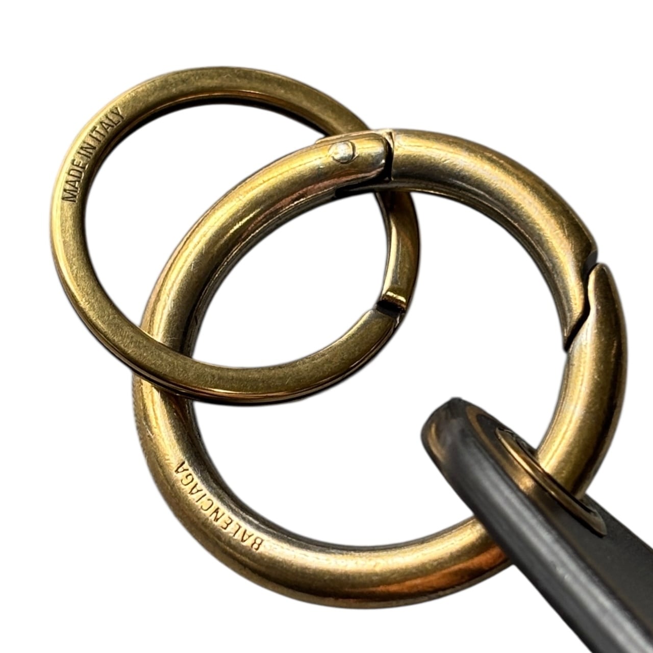 素材はレザーとメタルで構成され、 「BALENCIAGA 10, AVENUE GEORGE V PARIS」とロゴが刻印されています。