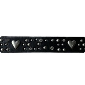 全面にスタッズとラインストーンとハートが施されたデザイン性のあるアイテムです。