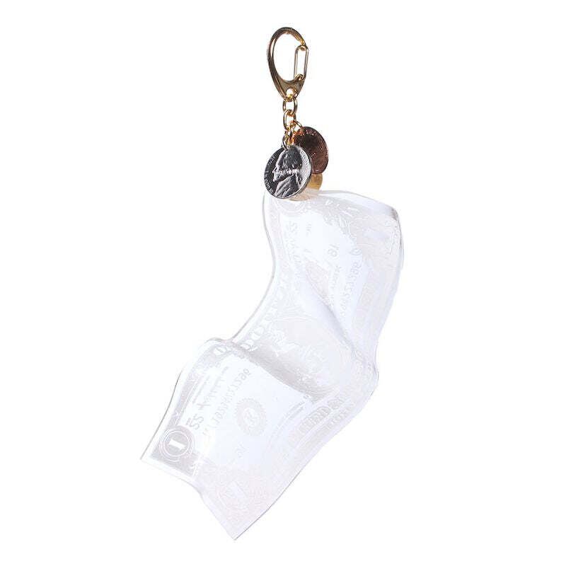 アクリルキーホルダーです。1ドル札とコインをモチーフにした個性的で存在感のある唯一無二のアイテムです。
